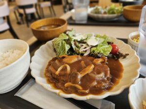 レストランのハンバーグ定食をみんなで美味しくいただきました🍴