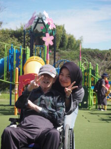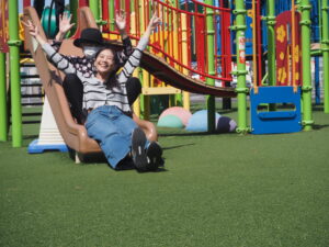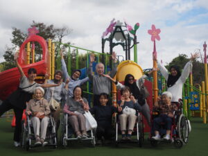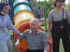 小さな公園もあり、スタッフと一緒に童心にかえってすべり台を楽しんでいる方もいました💕