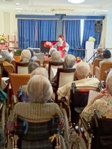 三味線やダンスに皆で一緒に懐かしい歌をうたったり、とても楽しい時間でした。