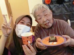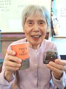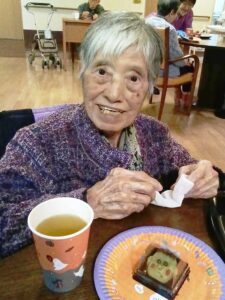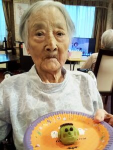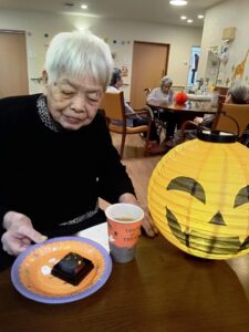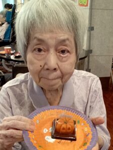 ハロウィンのおやつは、シャトレーゼの練りきりが出ました。自分の好きな物を選んでもらって、召し上がっていただきました。