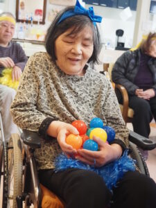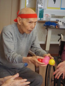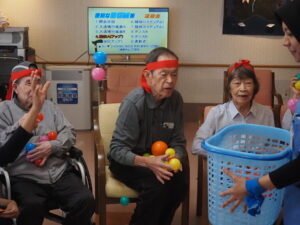 スタッフが持つ移動するかごに向かって、たくさんボールを投げ込んでもらいます♪