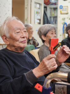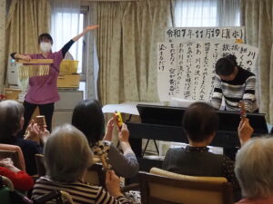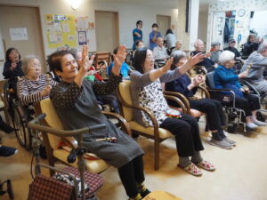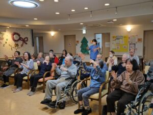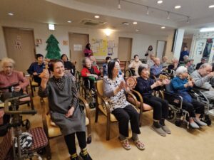 音楽療法🎶なみはや 2025-11-25 先日、半年毎に来てくれている『音楽療法』の訪問がありました🎵 http://cleuve.jp/wp-content/uploads/2025/11/e45705370061e7060bc51e52ac83d045.mp4 歌って、楽器を鳴らして、身体を動かして 今回も 楽しい時間をご提供いただきました☺️ カテゴリー なみはや 前の記事へ コメントを残す コメントをキャンセルメールアドレスが公開されることはありません。 ※ が付いている欄は必須項目ですコメント ※ 名前 ※ メール ※ サイト 上に表示された文字を入力してください。 スタッフブログ一覧に戻る
