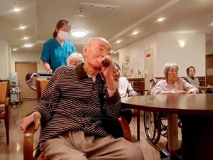 玉入れが、終わってからは、施設にあるカラオケを皆でしました。