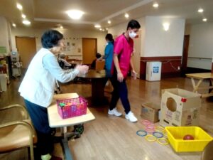 午後の空いた時間を使って、玉入れを皆でやっていました。