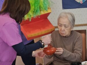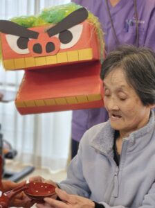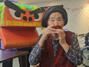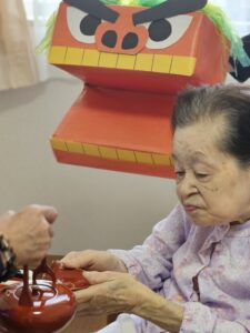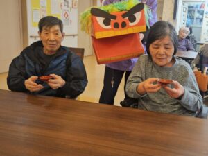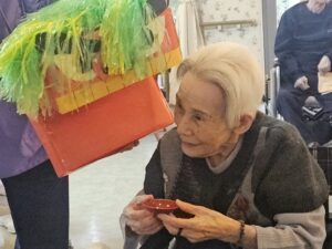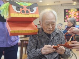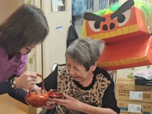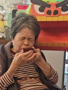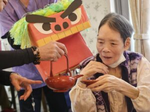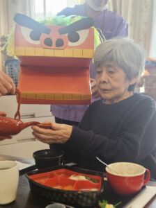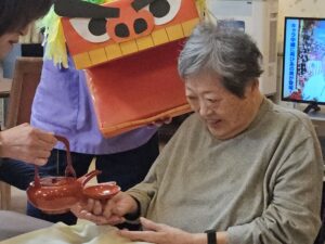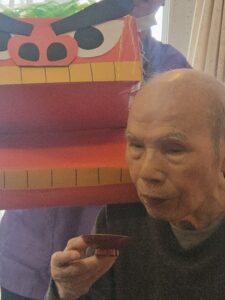 お屠蘇は、手作りの獅子舞とともにみなさまのもとへご挨拶にまわり、無病息災を願って一杯ずつご提供🤗