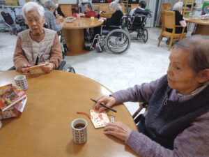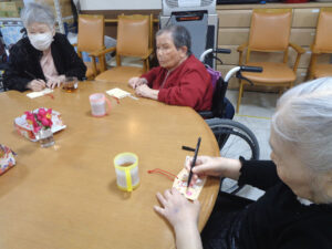 皆さんが作られた絵馬は、それぞれの居室の入口に掲示しています!