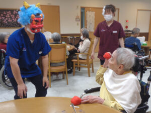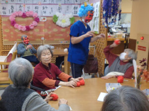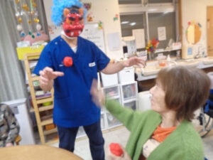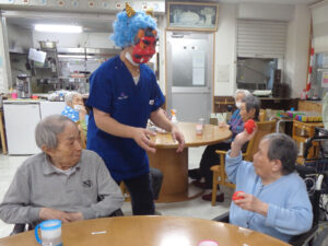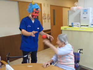 先日、2月3日は“節分”でしたので、みなさんに豆(ボール)を投げて