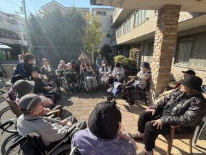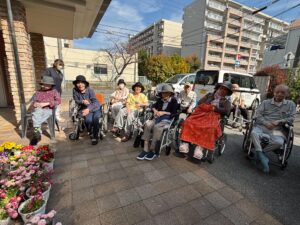 ポカポカお天気の日は外でお茶タイムをしたり、集まって歌を歌ったり・お花と写真を撮ったり・・ ☺️