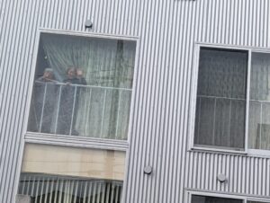 部屋の窓からお見送り~✋